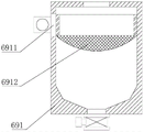 6、晶体颗粒集中机构;61、分类箱体;62、连接软管;63、焊接架;64、弹性件;65、凸轮电机;66、倾斜分离框;661、过滤网罩;662、耐磨片;67、电磁铁;68、铁片;69、溶液收集罩;691、溶液储存罐;6911、活动框;6912、精细滤网;692、晶体颗粒收集罩;693、晶体颗粒储存罐;6931、单向管;6932、热风机;6933、排气管;6934、透气网。