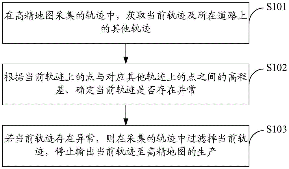 According to the method provided by the embodiment of the disclosure, the precision of the track acquired by the high-precision map can be controlled based on the elevation difference, an effective control means is provided, the abnormal track can be identified quickly, the risk of precision abnormality is reduced, the precision of field data is improved, the abnormal track is prevented from flowing into the production link of the high-precision map in the industry, the waste of production capacity is effectively avoided, the reliability of the high-precision map is improved, and the automatic driving protection navigation is realized.