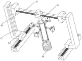 当对钻头14的位置进行调整时,通过外部驱动源带动螺纹杆一2进行转动,螺纹杆一2带动与之螺纹连接的滑动块一3在支撑支块1上开设的滑槽三40内部进行移动,从而实现对钻头14的前后移动,通过外部驱动源带动螺纹杆二10进行转动,螺纹杆二10带动与之螺纹连接的移动座37进行前后移动,同时滑杆9与移动座37滑动连接,进行辅助滑动,从而实现钻头14的左右运动,调节钻头14的位置,便于进行多位置的破碎作业。