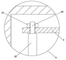 Preferably, the top fixedly connected with back shaft 25 of scraper blade 8, the top fixedly connected with of back shaft 25 pegs graft at the inside lead screw 26 of diaphragm 3, the outside threaded connection of lead screw 26 has the fastening nut 27 that is located the top of diaphragm 3, through the setting of back shaft 25, lead screw 26 and fastening nut 27, fastening nut 27 is taken off in the rotation, the lead screw 26 on back shaft 25 top is taken out by the inside of diaphragm 3, can be better dismantle scraper blade 8, can reach better washing or change scraper blade 8, also can be better take out filter plate 7 by the inside of overflow chamber 6, change filter plate 7, make it keep better filter effect.