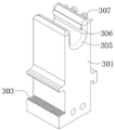 Further, a belt pulley 224 is disposed at an end of the screw 203 extending out of the first chute 226 (or the screw 203 is far away from the third chute 302), a driving motor 225 for driving the belt pulley 224 to rotate is disposed on the base 201, and the driving motor 225 drives the screw 203 of the driving assembly to rotate through the belt pulley 224 (a part of a belt is not shown in the figure).