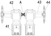 作为本发明优选的方案,相邻所述减速机之间通过连接轴连接成一体,所述连接轴包括连接柱,连接柱两端均固定连接有连接法兰,减速机远离输出端的一侧安装有连接盘,所述连接盘与连接法兰之间通过螺栓固定连接,两侧所述连接法兰中部开设有供轴体插合设置的槽体,槽体内转动连接内环,连接轴两端的连接法兰分别与连接盘通过螺栓进行固定连接,从而将两个驱动机构连接成一体。As a preferred solution of the present invention, the adjacent reducers are connected together by a connecting shaft, the connecting shaft includes a connecting column, both ends of the connecting column are fixedly connected with connecting flanges, and the reducer is installed on the side away from the output end. There is a connecting plate, the connecting plate and the connecting flange are fixedly connected by bolts, and the middle of the connecting flanges on both sides is provided with a groove body for the shaft body to be inserted into. The connecting flanges are respectively fixedly connected with the connecting plate by bolts, so as to connect the two driving mechanisms into one body.