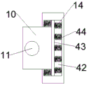 7.根据权利要求1所述的一种基于通信机柜的智能电源分配装置,其特征在于,所述弹性组件(14)包括位于所述限位板(9)两侧内部的活动槽(42),所述卡板(10)穿插所述活动槽(42)的一端中部的开口槽,所述卡板(10)位于所述活动槽(42)的中部设置有移动板(43),所述移动板(43)的两端均设置有若干弹簧三(44)。
