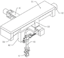 In order to install the adjusting screw 5 on the surface of the supporting panel 31, thereby facilitating the rotation of the adjusting screw 5 and realizing the horizontal movement of the clamping air rod 4, a concave supporting plate 51 with a downward opening is fixedly connected to the lower surface of the upper end of the supporting panel 31, the inner surfaces of the two ends of the concave supporting plate 51 are rotatably connected with the outer surface of the adjusting screw 5 through the inner ring surface of a bearing, in order to drive the adjusting screw 5 to rotate, a speed reducing motor 52 is fixedly installed on the surface of one side of the concave supporting plate 51, and the outer surface of the output shaft of the speed reducing motor 52 is fixedly connected with the outer surface of one end of the adjusting screw 5 through a coupler.
