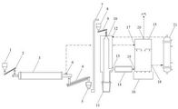 冷凝器21为列管式冷凝器,用于对由第一反应腔体排出气体进行冷却和水汽去除处理,冷凝器21进口经管路连通喷淋塔15的第三气体出口18,冷凝器21出口经管路连通熔融炉的第一气体进口12。另外,冷凝器21中产生的冷凝水经管路送入喷淋塔15的底部水封池16,亦可实现冷凝水循环利用。