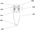 具体地,所述辅料条410的一侧可通过卡扣结构或/和锁紧结构(螺丝)连接于所述立柱100的室外侧,所述辅料条410的另一侧可通过卡扣结构或/和锁紧结构(螺丝)固定连接于所述压盖座520的内侧,所述装饰盖510罩于所述压盖座520,装配方便。