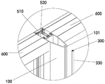 具体地,所述立柱100的室内侧设置有灯槽101,发光灯带300的背面可以贴于灯槽101,散热效果佳。所述灯槽101对应于所述立柱100的室内侧具有开口,所述灯槽101沿所述立柱100的高度方向设置,所述发光灯带300嵌于所述灯槽101内,安装方便,发光灯带300可以不凸出于灯槽101。