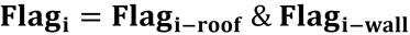 其中,Flagi为光伏板界面微元的i的遮挡判断,Flagi-wall为非光伏板源遮挡物判断,Flagi-roof为光伏板源遮挡判断。