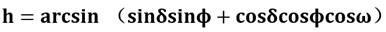 S1根据当地维度、太阳时角、赤纬角计算太阳高度角及太阳方位角。