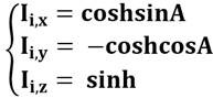 其中,为光伏板界面微元i的反向光束向量,Ii,x为光伏板界面微元i的反向光束向量x方向坐标,Ii,y为光伏板界面微元i的反向光束向量y方向坐标,Ii,z为光伏板界面微元i的反向光束向量z方向坐标,A为太阳方位角,h为太阳高度角。