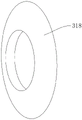 如图 4和图6所示,具体的,左转轴37和右转轴38外侧壁均固定安装有限位环318,两个限位环318相近一侧为弧面设计,右转轴38与左转轴37相近一侧固定安装有若干插柱311,左转轴37与右转轴38相近一侧开设有等量与插柱311相插接配合的槽,插柱311和槽的配合,用于右转轴38与左转轴37的旋转联动,右转轴38与左转轴37外侧壁共同转动安装有纸轴39,纸轴39位于两个限位环318之间,两个限位环318用于限定纸轴39的安装位置。As shown in Figures 4 and 6, specifically, the outer walls of the left rotating