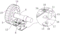 In addition, in order to make when the propelling movement electric iron, the rotation of gyro wheel 5 is more stable, it has recess 26 to open in the outside of gyro wheel 5, and the outer fringe department of gyro wheel 5 is the equal angle and is fixed with antislip strip 27, and the recess 26 that begins can reduce the gravity of gyro wheel 5, makes things convenient for taking of personnel's propelling movement and electric iron, and the design of antislip strip 27 makes the frictional force that improves, thereby when making the electric iron propelling movement, gyro wheel 5 rotates more stably.