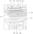 S5、内线排线机构4启动工作,驱动安装板46沿线缆送进方向相垂直的水平纵向往复移动并逐渐下降至预设高度,搓线板47将多根内线分别搓动进入对应的内线分嵌管45内,而后搓线板47上升复位;S5. The inner wire arranging mechanism 4 starts to work, drives the