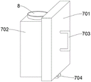 Referring to fig. 2, 4 and 7, on the basis of the first embodiment, the placing assembly 7 includes a butt-joint plate 701 and a placing frame 702 connected to one side of the butt-joint plate 701, the other side of the butt-joint plate 701 is connected with a pull rod 703, the placing frame 702 is used for loading a sampling tube 8, the other side of the sampling box 5 is provided with a clamping groove 504 matched with the butt-joint plate 701, in this embodiment, the inner wall of the sampling tube 8, the inner wall of the slot 503 and the inner wall of the clamping groove 504 are all provided with an elastic sealing gasket 507 to improve the sealing performance in the sampling box 5, the bottom of the sampling box 5 is connected with a placing plate 505, the placing plate 505 is provided with a sliding groove 506, and the bottom of the butt-joint plate 701 is connected with a sliding block 704 in sliding fit with the sliding groove 506, so that the butt-joint plate 701 can move stably along the sliding groove 506, and the whole placing assembly 7 can be conveniently and be quickly plugged and taken out.
