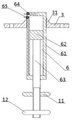 在所述伸缩机构(6)的活塞杆(63)上通过螺纹副连接有第二抵挡板(12),所述第二抵挡板(12)设置在下裙部(71)的下端,且所述第二抵挡板(12)的外径大于下裙部(71)的内径并小于下弹簧座(51)中心孔(52)直径;