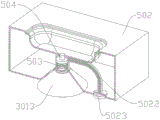 此时使用者旋转旋钮203和第二永磁起重器305的转轴,第二永磁起重器305会将凹模502吸附在凹模固定座301上,而旋钮203转动会带动中心联动齿轮205转动,然后通过从动齿轮204带动两个第一永磁起重器206的转轴转动,从而将凸模501吸附在凸模固定座207上。在脱模的时候,需要将脱模气孔3011与气管相连接,然后充气,使得气体通过脱模气道5022进入到凹模502中,此时气体会向下挤压分离凸块504,分离凸块504就会压缩分离弹簧503而向下移动,当分离凸块504的顶部与辅助排气口3012中开设通孔分离时,此时气体就会向上喷出,从而将附着在凹模502上成型好的零件脱离,由于分离凸块504是与凹模502的内壁平齐的,可以减少成型后零件表面毛刺缺陷。
