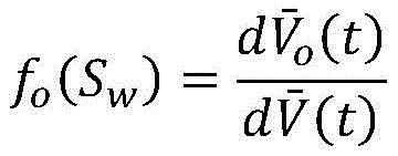 S4、将岩心置于岩心夹持器中老化不少于2天;使用非稳态法进行相渗测定:用模拟地层水驱替岩心,驱替速度Q。记录见水时间T、见水时刻的累产油量VO、累产液量Qo以及岩心两端的驱替压差Δpo;见水初期,加密记录,随着出油量的不断下降,逐渐加长记录的时间间隔,含水率达99.9%后,测定残余油下的水相渗透率;