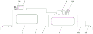 进一步的,废气处理单元还包括过滤网904和活性炭吸附层905,过滤网904和活性炭吸附层905由左往右依次设置在气味处理箱9内部,过滤网904可以将喷漆箱2中废气中的底漆颗粒进行过滤,避免污染引风机901,活性炭吸附层905可以将喷漆箱2中废气中的底漆异味进行过滤,避免直接排放到空气中造成污染。