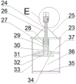 the control motor 49 is started to control the transmission gear 50 to rotate, the transmission gear 50 drives the transmission sleeve 51 to rotate, the transmission sleeve 51 drives the transmission sleeve rod 24 to rotate through the connecting flange 52, the hollow screw 28 rotates along with the transmission sleeve rod 24, the hollow screw 28 is in threaded fit with the sliding sleeve 29, the sliding sleeve 29 moves relative to the fixed sleeve 27, and therefore the movable sealing cover 31 is driven to move; it should be noted here that the fixed sleeve 27 and the seal ring 23 are fixed, the seal ring 23 and the barrel wall 33 are tightly pressed and matched to prevent rotation, the fixed sleeve 27 cannot rotate, and the sliding sleeve 29 and the fixed sleeve 27 are in splined connection and can only move axially, so that the movable sealing cover 31 can only move up and down and cannot rotate;
