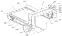 the conveying device is characterized in that a rotating shaft (301) is symmetrically connected to the inner wall of the conveying frame (1) in a rotating mode, a conveying belt (302) is sleeved on the outer side of the rotating shaft (301), a rotating motor (303) is connected to one end of the conveying frame (1), a sliding groove (304) is formed in one end of the conveying frame (1), a sliding plate (305) is connected to the sliding groove (304) in a sliding mode, a transmission rod (306) is rotatably connected to one end of the sliding plate (305), transmission gears (307) are sleeved on the outer side of the transmission rod (306) and the outer side of one rotating shaft (301), the two transmission gears (307) are meshed with each other to drive the rotating shaft (301) to rotate, and a belt (308) is sleeved on the outer side of the transmission rod (306) and the outer side of an output shaft of the rotating motor (303);