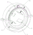 the lower inner frame (201) and the upper inner frame (202) are fixed into a whole circle and concentrically fixed in the inner ring of the outer frame component (1), a plurality of groups of sliding columns (301) are uniformly inserted in the lower inner frame (201) and the upper inner frame (202) in a sliding way, the rear end of each group of sliding columns (301) is elastically connected in the inner ring of the outer frame component (1), the inner end of each group of sliding columns (301) is elastically connected with an inherent connecting inner clamping plate (307), the main semicircular column (309) and the opposite semicircular column (310) form a group of circular ring and then are rotatably connected in the whole circular ring formed by the lower inner frame (201) and the upper inner frame (202), a plurality of groups of sliding columns (301) are spirally connected on a circular ring formed by the main semicircular column (309) and the opposite semicircular column (310), a circular path formed by the plurality of groups of inner clamping plates (307) is concentric with the whole circular ring formed by the lower inner frame (201) and the upper inner frame component (202), the inner clamping plate (401) is spirally connected with the whole circular ring formed by the opposite semicircular column (310), the spiral ring (405) is spirally connected with the elastic ring (405), the elastic ring (405) is spirally meshed with the elastic ring (405) at one end of the opposite end of the spiral ring (405), and a clamping point (504) is elastically connected to the front end of the upper inner frame (202), and the clamping point (504) is elastically clamped in the tooth body of the elastic clamping helical gear (501).