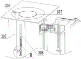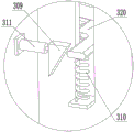 配合滑板325移动到螺旋滑杆306上的螺纹段的末端时,配合滑板325与配合弹簧323接触,压缩配合弹簧323,启动下压液压缸311伸出活塞杆,推动下压斜块309移动,下压斜块309上的倾斜面与配合下压板320接触,带动配合下压板320在清洗腔滑槽308内滑动,清洗腔滑槽308下移带动配合摩擦环321下移,带动配合滑板325在螺旋滑杆306上滑动,压缩配合弹簧323,使螺旋滑杆306上的螺纹段与配合滑板325脱离接触。