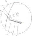 另外,为实现挡板12折角角度的自动调节,使其适配衬板13的形状,还在牵引块17处安装了弹性件二19和限位件20,当需要折角角度为零时,限位件20不对牵引块17进行限位,导向块8推动挡板12后,挡板12继续推动牵引块17移动,挡板12自身不会弯折;当衬板13中心凹两端凸时,可转动限位件20,使限位部二22挡住牵引块17,如此,由于牵引块17距离挡板12的位置变远,挡板12会朝靠近中心的方向弯折,当挡板12沿径向往中心移动后,挡板12的折角会变大,与衬板13的折角角度相近或相同,因此再进行转动清理碎料时有更佳的效果;同理,当衬板13中心凸两端凹时,只需转动限位件20,使限位部一21挡住牵引块17,如此,当挡板12沿径向往中心移动后,由于牵引块17不再移动,挡板12会朝远离中心的方向弯折,最终与衬板13的形状吻合,达到更佳的清理效果。