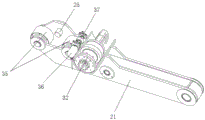 较优实施例为,所述举升驱动臂21上还设有用于采集电缆卷筒3转动圈数的轴编码器36,所述轴编码器36通过摩擦轮37与所述支撑轮35连接,所述摩擦轮37与所述支撑轮35相切并由其带动旋转,进而将电缆卷筒3的旋转角度圈数传递给轴编码器36,便于轴编码器检测计数。当然,所述轴编码器也可以采用其它现有检测设备进行电缆卷筒3的旋转角度圈数检测。A preferred embodiment is that the lifting