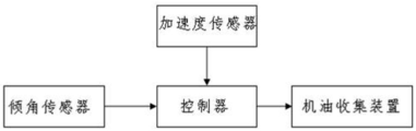 进一步地,机油收集系统还包括与机油收集装置连接的倾角传感器和与机油收集装置连接的加速度传感器,倾角传感器用于测量车辆当前的倾斜角度,加速度传感器用于测量车辆当前的加速度,机油收集系统还包括控制器,控制器用于根据倾角传感器的检测信号、加速度传感器的检测信号和位置传感器的检测信号控制驱动电机输出预设功率。