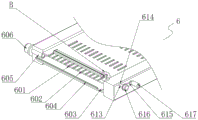 输送带2安装有防滑限位组件6,防滑限位组件6包括负压孔601、防滑圈602、负压框603、接触滚杆604、排风管605、第二真空泵606、支撑盒607、吸附孔608、夹持块609、夹持杆610、对接块611、对接管612、扭转杆613、转动孔614、下连接板615、扭转电机616和第四电推杆617;The conveyor belt 2 is equipped with an