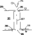 参考图2,示出的第一级聚焦装置24包括第一微米级透镜系统。安置该微米级透镜系统以收集和聚焦来自加速器孔隙22的粒子束。图2示出了在射束分布26上的聚焦作用。该透镜是像差校正圆柱形单透镜,其包括三个圆柱形元件28、30和32。外面的两个元件28和32处于地电位,而中间的元件提供有足够使电子聚焦在所需位置的电压。(可以施加任何极性的电压,但是当用于聚焦电子时,对于正电压而言像差是最小的,而当用于聚焦正电荷离子时,负电压的像差是最小的)。该特定的微米级透镜的近似比例显示在图的顶端。作为示例,在图中粒子束聚焦在样本夹具34a处,其可以横向移动以扫描样本,并且可以沿射束轴的方向移动以调节焦点。通过调节图1和2的截面上的标有x、y、l和t的相关尺寸来校正该透镜中的像差。Referring to FIG. 2, the first stage focusing device 24 is shown comprising a first micron-scale lens system. The microscale lens system is arranged to collect and focus the particle beam from the accelerator aperture 22 . FIG. 2 shows the focusing effect on the beam profile 26 . The lens is an aberration corrected cylindrical singlet comprising three cylindrical elements 28 , 30 and 32 . The outer two elements 28 and 32 are at ground potential, while the middle element is supplied with a voltage sufficient to focus the electrons at the desired location. (Voltages of either polarity can be applied, but aberrations are minimal for positive voltages when used to focus electrons, and minimal for negative voltages when used to focus positively charged ions). The approximate scale of this particular micron-scale lens is shown at the top of the figure. As an example, in the figure the particle beam is focused at the sample holder 34a, which can be moved laterally to scan the sample, and can be moved in the direction of the beam axis to adjust the focus. Aberrations in this lens are corrected by adjusting the relevant dimensions labeled x, y, 1 and t on the cross-sections of FIGS. 1 and 2 .