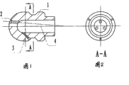 如图所示,本实用新型由壳体1和分布在壳体1上的多个钻进喷射孔2、清洗喷射孔3和进水口4组成。其中,壳体1前端为半球体,中部和后部为空心圆柱体,外圆面设有台阶,后端设有阳螺纹。钻进喷射孔2均布在壳体1前端圆球面上,可为3个或6个,其孔眼与中心线成7-15度角。清洗喷射孔3均布在壳体1侧端,可为3或6个,其孔眼与中心线成30-60度角。进水口4开在壳体1后部,使之成为钻井液的进入通道。
