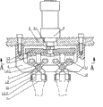 Fig. 1 is installed in the partial schematic sectional view on the core jig when to be the utility model cylinder casting with the core jig auxiliary clamping device be used for core under four cylinder bodies of a type.