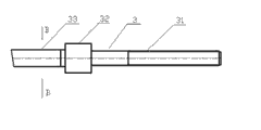 Adjustable spanner as shown in Figure 1 is made up of wrench body 4, adjusting rod 3, adjusting nut 6; Described wrench body 4 is combined by core body 41 and the big driving end 43, the small wrench head 42 that are socketed in the core body two ends.The small wrench head is the hexagonal shaped as frame structure of inequilateral with the head of big driving end, and wherein large and small driving end adopts steel alloy, core body 41 be connected for tight fit between driving end 43 and the small wrench head 42 greatly.There is axially extending bore the centre of wrench body 4, and described adjusting rod 3 is positioned at axially extending bore, and the adjusting nut 6 that matches with adjusting rod 3 is located in the adjusting nut hole of core body 41.Described adjusting rod 3 is a left hand thread with the screw thread of adjusting nut.Two end faces of described adjusting nut 6 are provided with has certain flexible elastic tape 5, described elastic tape and adjusting rod tight fit.Described adjusting rod 3 is left and right two, and diameter is identical, and length is identical, symmetric arrangement.The leading portion of adjusting rod promptly is provided with screw thread with the adjusting nut section of matching, and is thread segment 31, back segment, promptly go deep into the part of big or small driving end head, be milled with the pair of parallel plane, be called parallel plane section 33, in parallel plane section 33 fronts, for extension diameter section 32(sees Fig. 2,3,4).Described adjusting rod 3 is provided with fairlead 2 with large and small driving end cross-linked side, and described fairlead external diameter is identical with the internal diameter of large and small driving end, and forms the tight fit relation, the identical and formation slip cooperating relationship of plane-parallel shape of endoporus and adjusting rod back segment.Two end faces of described adjusting nut 6 are provided with has certain flexible elastic tape 5, and described elastic tape and adjusting rod form the tight fit relation that can slide.