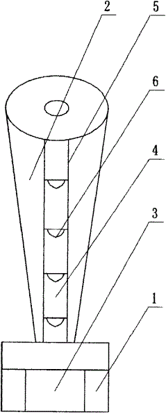 As shown in Figure 1, Crystal lamp of the present utility model comprises lamp socket 1 and transparent lamppost 2, and described lamp socket can be done cylindrical shape or grow multiple shapes such as cube-shaped, and the material of described transparent lamppost is made of crystal or glass, and its diameter increases from bottom to top gradually; Described transparent lamppost 2 is fixed on the lamp socket 1, is provided with electric light source 3 in the described lamp socket 1, and the light source of various color change can be provided; This Crystal lamp also comprises the transparent body 4, is provided with cylindrical passageway 5 in the described transparent lamppost 2, and the described transparent body 4 places in the cylindrical passageway 5, and electric light source is scattered out by crystalline, and color is gorgeous more soft.