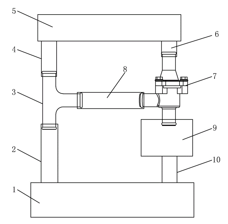 图中1发动机总成、2发动机进水管、3三通、4水箱出水管、5水箱总成、6水箱进水管、7节温器、8连接管、9暖风机、10发动机出水管。In the figure 1 engine assembly, 2 engine water inlet pipe, 3 tee, 4 water tank outlet pipe, 5 water tank assembly, 6 water tank water inlet pipe, 7 thermostat, 8 connecting pipe, 9 heater, 10 engine water outlet pipe.