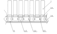 1-回程传动轮;2-主传动轮;3-链板;4-炉体;5-电热管;6-托辊;7-工件;8-电风扇;9-轨道;3.0-链条;3.1-内连扳;3.2-外连板;3.3-辊子;3.4-板梁;3.5-轴销;4.0-气动炉门。