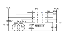 图6:两轴地磁传感器MMC212电路原理图;Figure 6: Circuit schematic diagram of two-axis geomagnetic sensor MMC212;