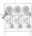 图6是本实用新型柱管竖纹抛光机采用三级抛光轮时的俯视横截面剖视图。