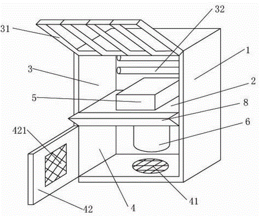 优选为,所述的柜门上设有带金属网的窗口421。