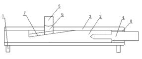 As shown in Figure 1, a kind of stainless steel perforating press of the utility model comprises frame 1 and blanking apparatus, is fixed with blanking apparatus on the frame 1; Blanking apparatus comprises core 2, core overcoat 3 and core connecting rod 4, and core connecting rod 4 is threaded with core 2, and core 2 outsides are provided with core overcoat 3, and core overcoat 3 is provided with punch die hole 5; Be provided with punching pin 6 in the punch die hole 5, punching pin 6 matches with slant rail 7, and slant rail 7 tilts, and slant rail 7 angles of inclination are 10-30 °; Be provided with pad 8 between core connecting rod 4 and the core overcoat 3, simple in structure, easy to operate, machining accuracy is high; Good product quality has improved production efficiency, has reduced production cost.