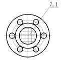 图1所示的卧式自吸离心旋涡组合泵,它包括电机1、泵轴2、托架3、泵壳4、右旋涡泵体5、左旋涡泵体6、泵盖7、叶轮8、旋涡叶轮9和密封组件10。所述泵壳4为卧式结构,顶部设有出水口,右端面通过托架3与卧置电机1直联构成主体结构。电机1外伸轴端直联泵轴2,泵轴2与泵壳4右端孔安装的密封组件10配合构成轴封结构,本实施例中密封组件10是机械密封。处在泵壳4内腔中的泵轴2依次定位串装右旋涡泵体5、旋涡叶轮9、左旋涡泵体6和叶轮8,轴向配合的右旋涡泵体5、旋涡叶轮9和左旋涡泵体6构成旋涡泵结构,旋涡泵位于泵壳4内腔中直接沟通出水口。所述泵盖7为双向直角弯管件,下端管口法兰端面与泵壳4敞口端密封连接构成离心泵结构,同轴且相靠的离心泵与旋涡泵的吸入口沟通。泵盖7上端管口为吸入口,其内孔如图5所示嵌装过滤网7.1,本实施例中为30目过滤网7.1。所述旋涡叶轮9为开式结构,圆周上均布径向叶片,相邻径向叶片之间圆周相间形似羽毛球正面投影状。