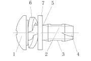 所述头部1与螺杆部2的螺纹起点之间为用于套装搭铁端子的收缩颈5,所述收缩颈5外部依次套装有弹簧垫圈6与平垫圈7。