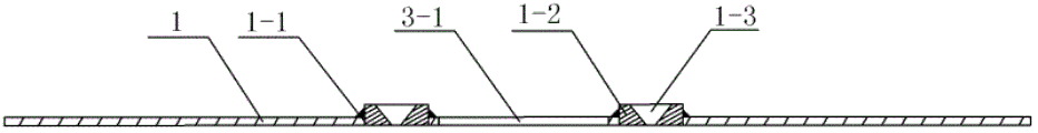 Among the figure: 1, template body; 1-1, through hole; 1-2, positioning sleeve; 1-3, through hole; 2, back of the body wallboard; 2-1, slotted hole; 3, positioning element; 3-1, slotted hole; 3-2, boss.
