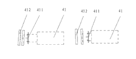 倾斜过程:固定于滑架4上的两个倾斜缸41,通过侧移缸42作为支点的滑架4和货叉架5的旋转运动实现货叉架5的倾斜动作,以完成挂于货叉架5上的货叉6的前后倾动作。