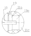 The front portion of drain pipe 11 is connected with the ingress pipe 19 of uniform internal diameter, and the rear portion of drain pipe 11 is connected with the delivery line 18 of uniform internal diameter.Ingress pipe 19 all is positioned at second chamber 14 with drain pipe 11, and delivery line 18 is positioned at the 3rd chamber 15, so ingress pipe 19, drain pipe 11 and delivery line 18 are communicated with first chamber 13 and the 3rd chamber 15.