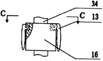 直流电机、风扇装置的结构如图1、图3和图4所示,直流电机内定子15安装在伞杆34上,直流电机外转子16与电机内定子15连接,风扇叶片13通过风扇活动轴14与电机外转子16上端连接。
