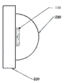 参照图1与图2,为现有在LED发光芯片上进行刻槽的LED光源,所述LED光源是封装在封装材料230中且放置在基板220上的LED芯片110的表面刻槽111,这样的光源发出的光线在空间上色温会有较大的区别,与如图3所示反光面310为连续面的常规透镜配合使用,在照明区域容易产生颜色不均匀现象。