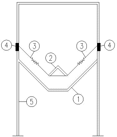 accompanying drawing: funnel under the 1-, 2-cone, 3-elastic draw bar, 4-bulkhead ring beam, 5-cylinder.