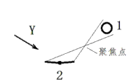 其次,目前CLFR的反射片的弧度是不可调的,1是中间部分的反射镜距离集热管比较近,而两侧的反射镜距离集热管比较远,如果所有反射镜都是一样的弧度,势必会有一部分反射镜聚焦效果不好;2是虽然反射镜能够随阳光角度的变化而转动,反射镜中心与集热管中心的距离是不变的,但是随阳光入射角度的不同,反射镜焦距的位置就会发生变化,如附图2和附图3,阳光与反射镜成30°角时(见附图3),其聚焦距离(反射镜中心到聚焦中心的距离)只有阳光与反射镜垂直时(见附图2)的一半。 Secondly, the radian of the reflector of CLFR is not adjustable at present. 1. The reflector in the middle part is relatively close to the heat collecting tube, while the reflectors on both sides are far away from the heat collecting tube. If all the reflectors have the same radian, it is bound to be There will be some reflectors with poor focusing effect; 2. Although the reflector can rotate with the change of sunlight angle, the distance between the center of the reflector and the center of the heat collector tube is constant, but the focal length of the reflector varies with the incident angle of sunlight. The position will change, as shown in Figure 2 and Figure 3, when the sunlight and the reflector form an angle of 30° (see Figure 3), the focus distance (the distance from the center of the reflector to the focus center) is only when the sunlight is perpendicular to the reflector half of the time (see Figure 2).